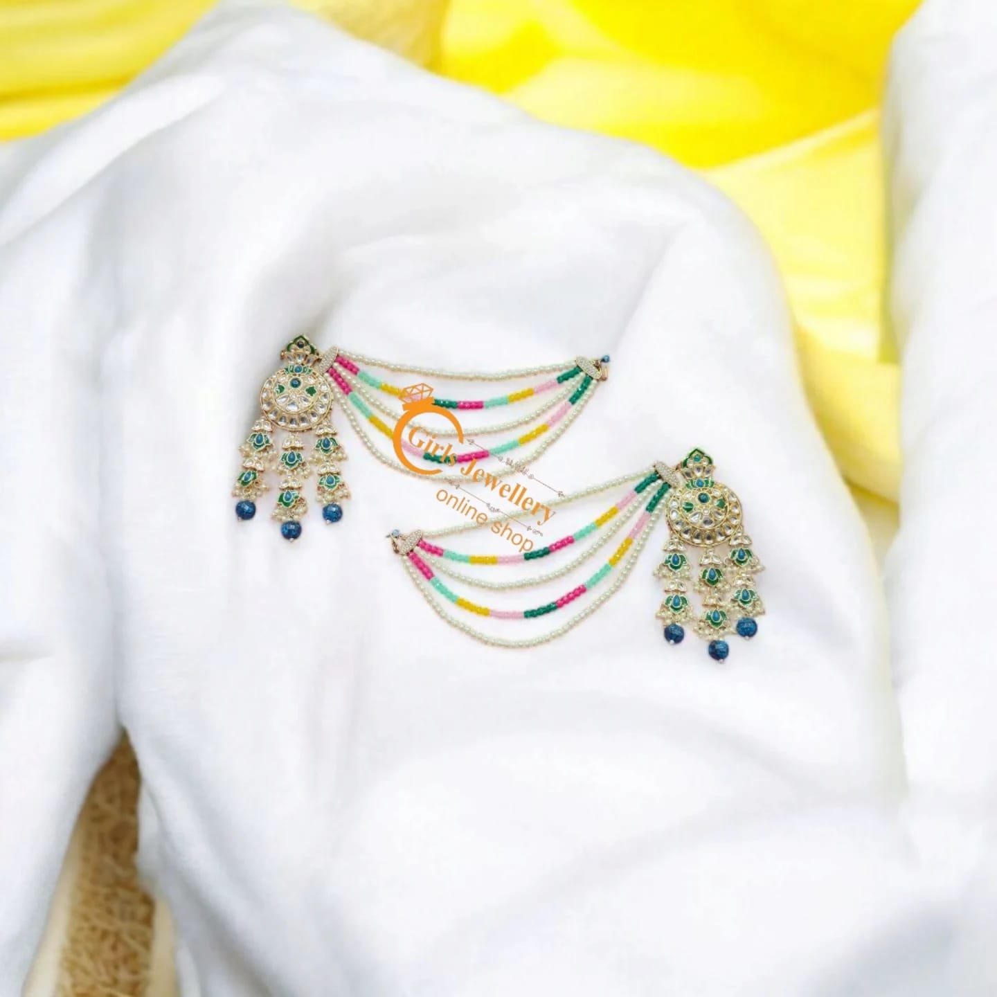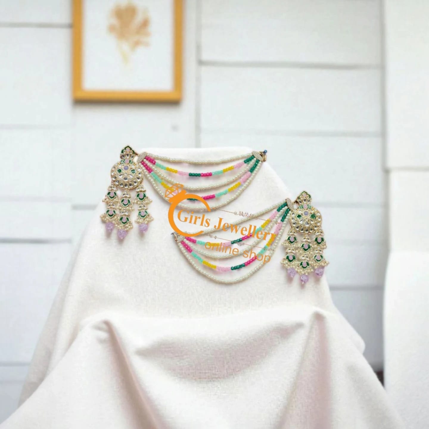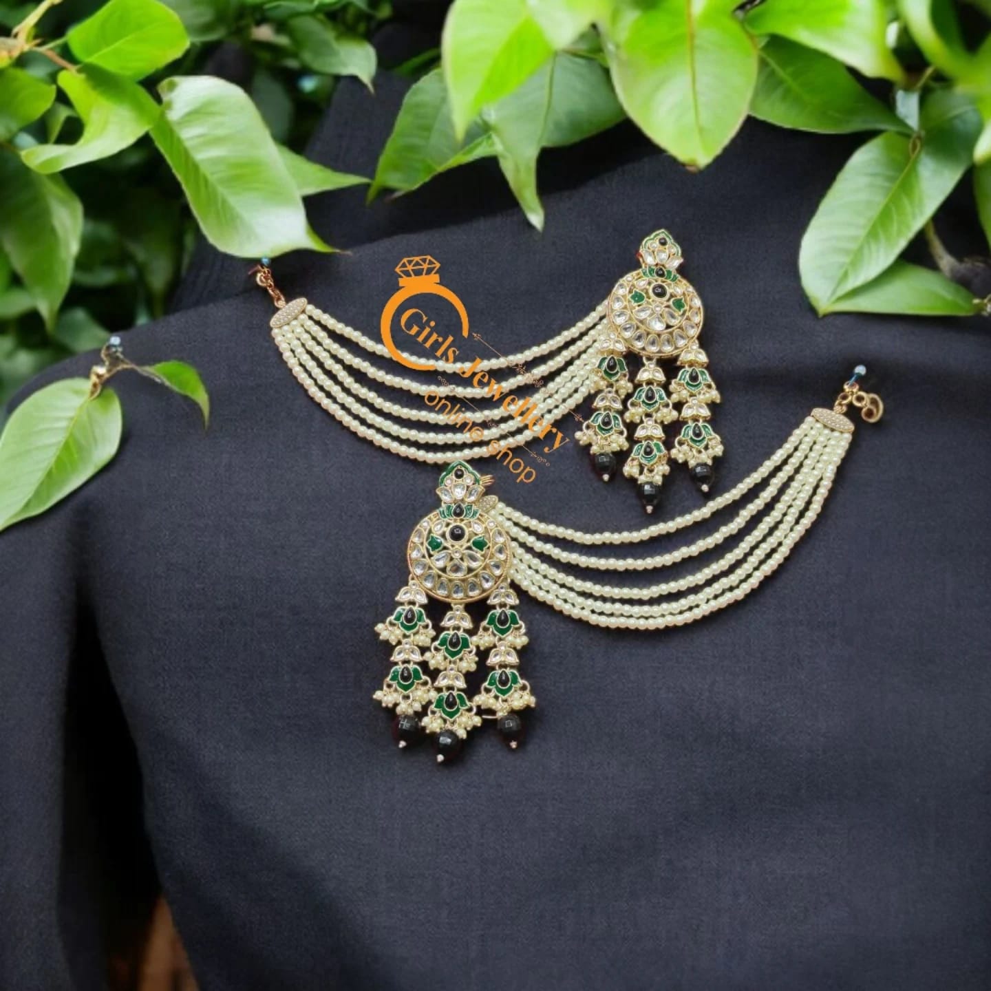 Be the first to review “Multicolor Stone Work Ear Chains with Green Drop Jhumka” Cancel reply