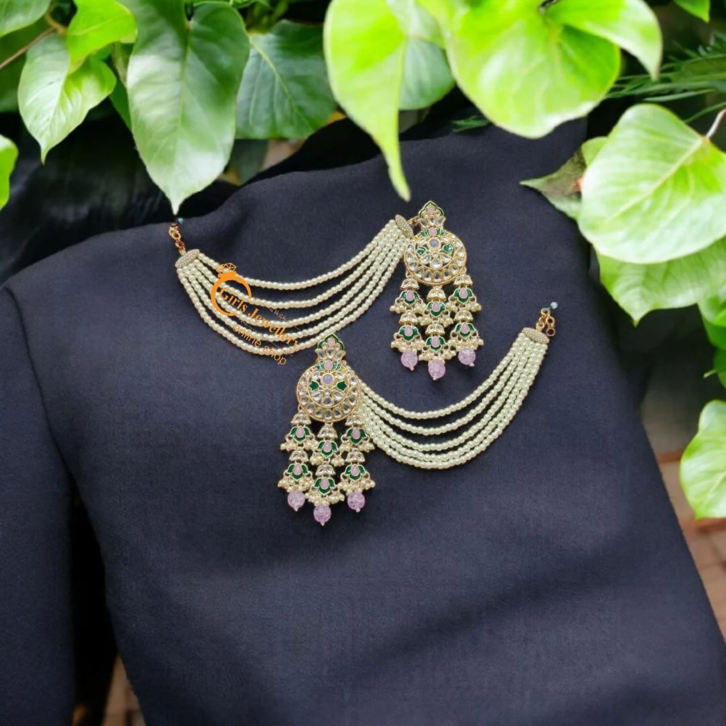 Royal Kundan Bridal Jewellery Set with Green Bead Detailing