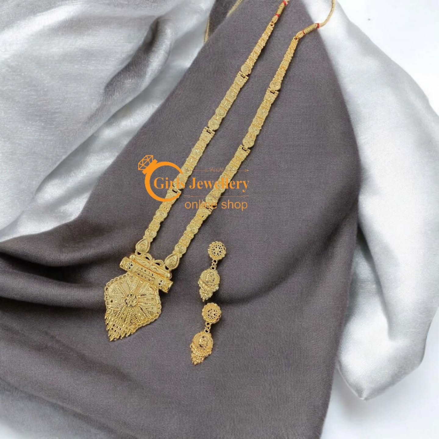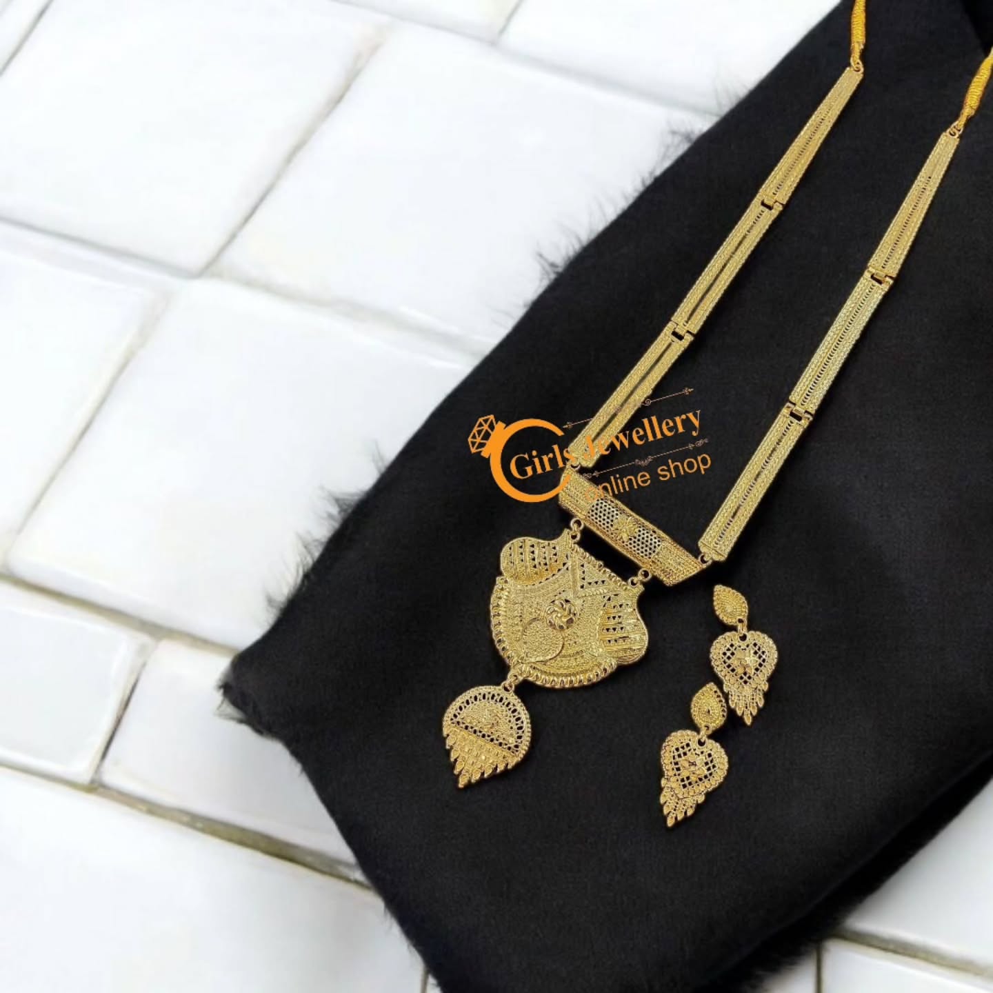 Elevate Your Bridal Look with This Exquisite Gold-Plated Necklace Set