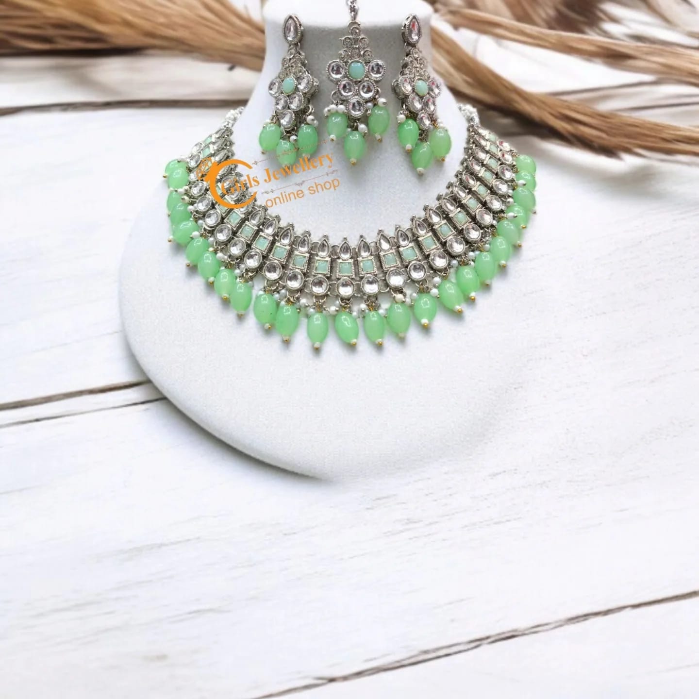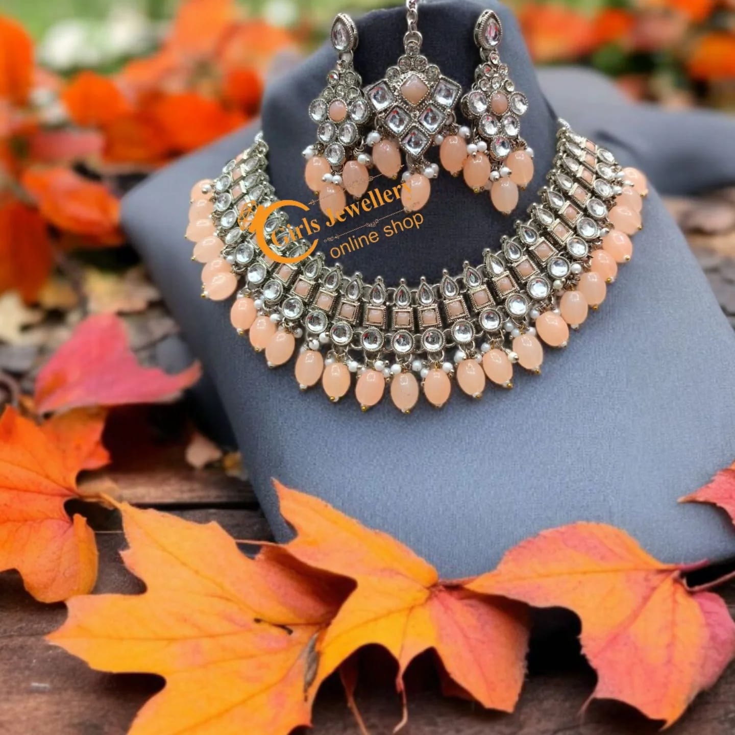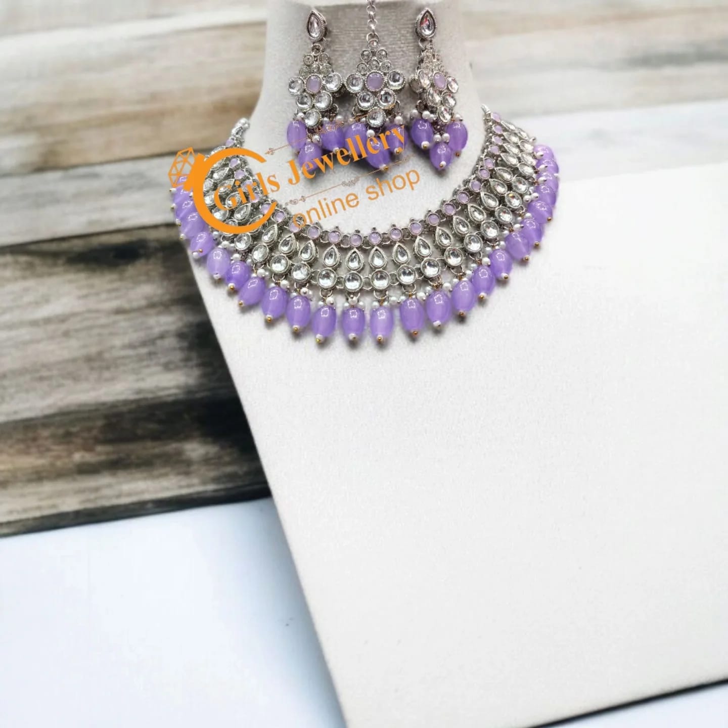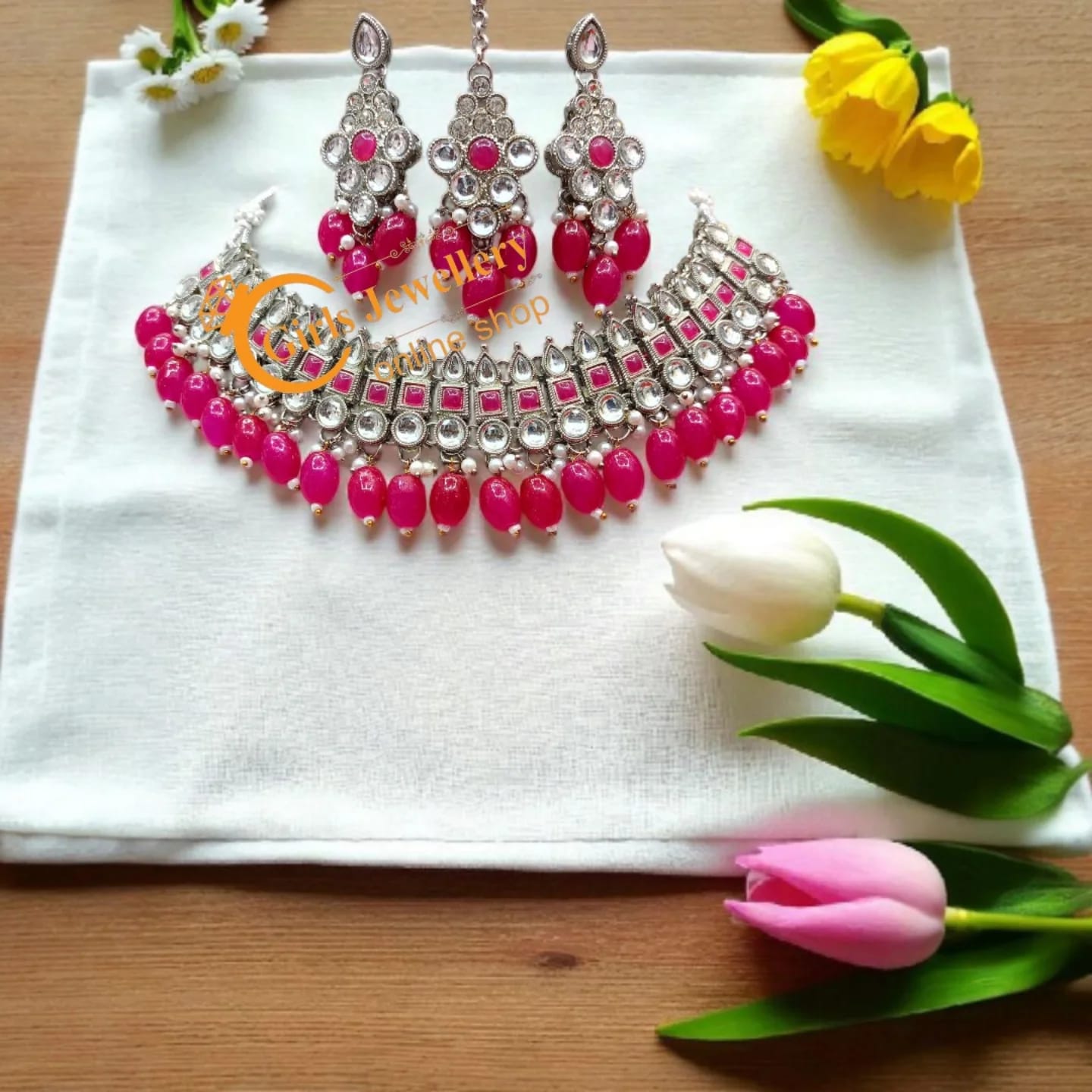 Be the first to review “Ruby Pink Beaded Kundan Choker Set with Matching Earrings” Cancel reply